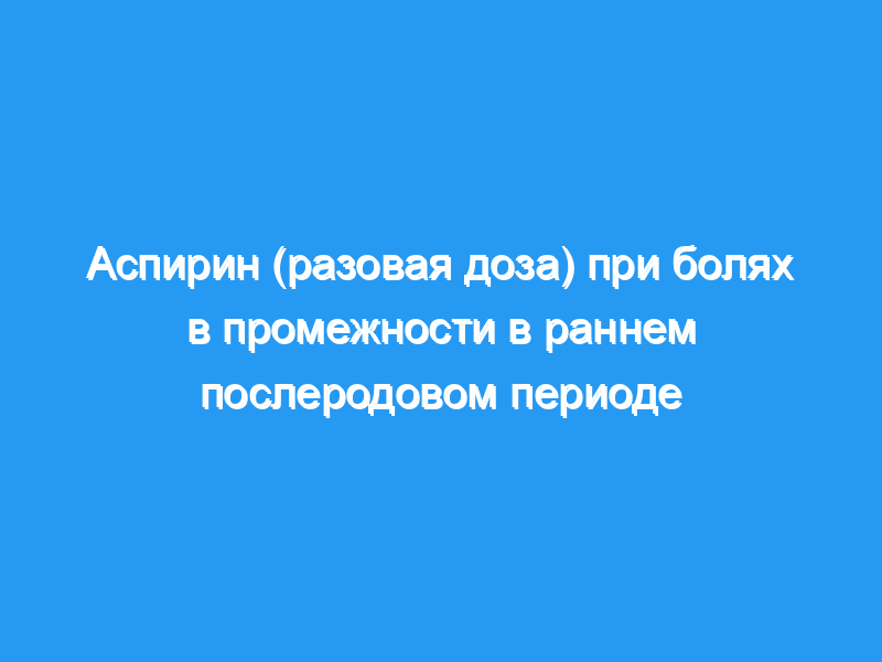 ных эффектах для новорожденных. Вторичные исходы В исследованиях не сообщалось о результатах вторичного обзора: длительная госпитализация из-за боли в промежности, повторная госпитализация из-за боли в промежности, полное грудное вскармливание при выписке, смешанное вскармливание при выписке, полное грудное вскармливание через шесть недель, смешанное вскармливание через шесть недель, боль в промежности через шесть недель, взгляды матери, послеродовая депрессия матери. Выводы авторов: Мы обнаружили некачественные доказательства того, что однократная доза аспирина по сравнению с плацебо может увеличить облегчение боли у женщин с болями в промежности после эпизиотомии. Очень некачественные данные также свидетельствуют о том, что аспирин может уменьшить потребность в дополнительной анальгезии, не увеличивая побочных эффектов для матери. Фактические данные были понижены на основании ограничений исследования (риск предвзятости), неточности и предвзятости публикации или и того, и другого. В РКИ не учитывались кормящие женщины, поэтому нет данных для оценки влияния аспирина на побочные эффекты у новорожденных или грудное вскармливание.Поскольку международное руководство рекомендует матерям начинать грудное вскармливание в течение одного часа после рождения и кормить исключительно грудью в течение первых шести месяцев, данные этого обзора неприменимы к текущей рекомендуемой передовой практике. Аспирин может быть рекомендован к применению женщинам, не кормящим грудью, с болями в промежности после эпизиотомии. Хотя формальная оценка не входила в компетенцию данного обзора, текущие рекомендации предполагают, что при послеродовой боли в промежности в первую очередь следует рассмотреть другие обезболивающие препараты (включая парацетамол). Такие средства находятся в центре внимания других обзоров этой серии, посвященных лекарствам от боли в промежности в раннем послеродовом периоде. Считается наиболее вероятным, что если в будущем будут проведены РКИ, они смогут сравнить аспирин с другими обезболивающими. Будущие РКИ должны быть разработаны таким образом, чтобы обеспечить высокое методологическое качество и устранить пробелы в фактических данных, такие как вторичные результаты, установленные для этого обзора. Текущие исследования были сосредоточены на женщинах с болью после эпизиотомии, будущие РКИ могут быть распространены на женщин с болью в промежности, связанной со спонтанными разрывами или оперативными родами.