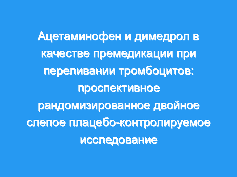 В этом проспективном исследовании были рандомизированы переливания крови пациентам, получавшим предварительно сохраненные лейкоцитарно-восстановленные тромбоциты для афереза от одного донора (SDP). к премедикации либо ацетаминофеном в дозе 650 мг внутривенно, либо димедролом в дозе 25 мг внутривенно, либо плацебо.