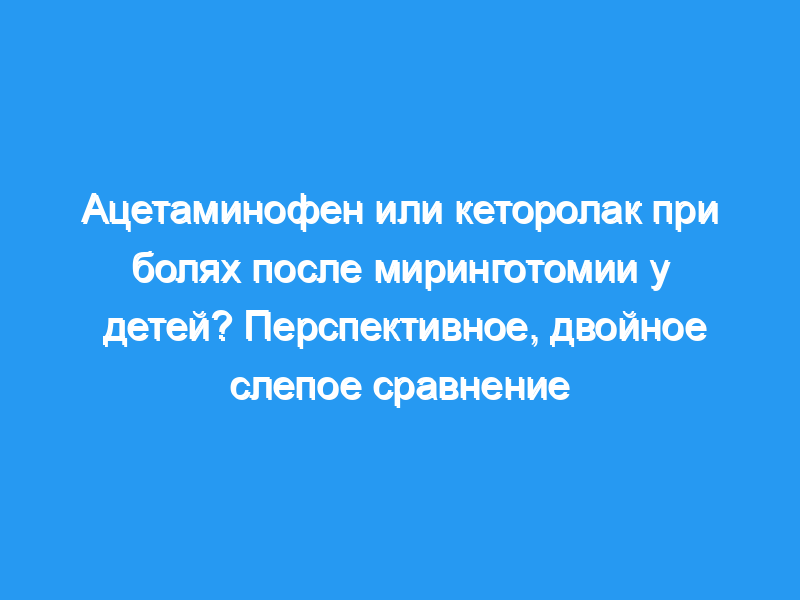 Целью этого проспективного двойного слепого исследования было определить, обеспечивает ли 15 мг/кг-1 ацетаминофена (парацетамола) обезболивание, аналогичное тому, которое обеспечивает кеторолак., 1 мг/кг-1, при более низкой дозе.