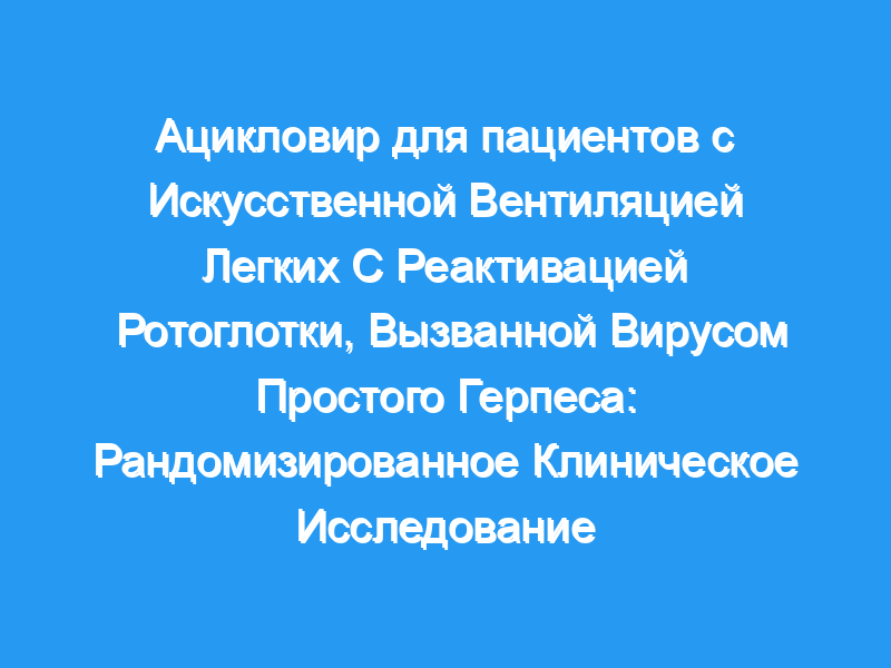 Определить, сокращает ли превентивное лечение внутривенным введением ацикловира продолжительность искусственной вентиляции легких у пациентов с реактивацией ротоглотки ВПГ. Дизайн, условия и участники: Двойное слепое плацебо-контролируемое рандомизированное клиническое исследование было проведено в 16 отделениях интенсивной терапии во Франции. Участники включали 239 взрослых (возраст и старше 18 лет), которые получали искусственную вентиляцию легких в течение не менее 96 часов и продолжали получать искусственную вентиляцию легких в течение 48 часов или более, с реактивацией ротоглотки ВПГ. Пациенты были зачислены в период со 2 февраля 2014 года по 22 февраля 2018 года. Вмешательства: Участники были рандомизированы для внутривенного введения ацикловира в дозе 5 мг/кг 3 раза в день в течение 14 дней или соответствующего плацебо. Основные результаты и меры: Первичной конечной точкой были дни без ИВЛ с момента рандомизации до 60-го дня. Предварительно определенные вторичные исходы включали смертность через 60 дней. Основные анализы были проведены на основе намерения лечить.