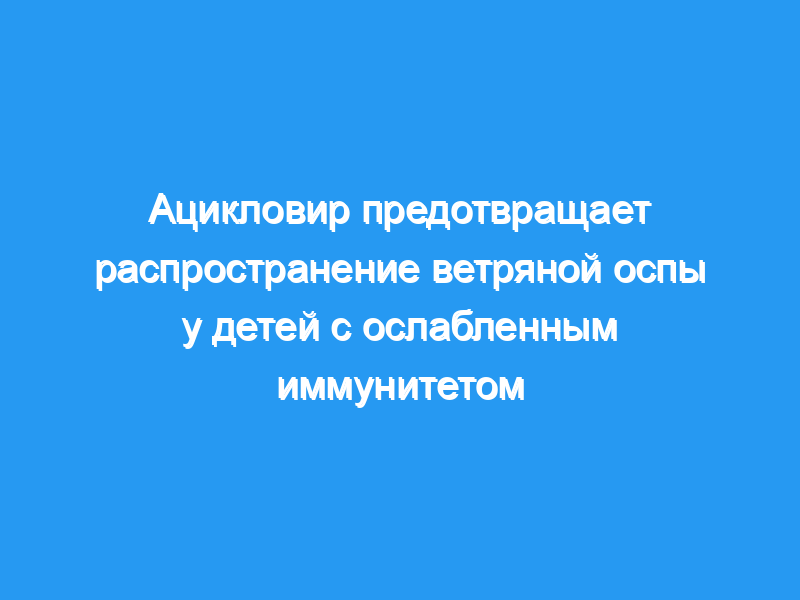 Пятьдесят детей с ослабленным иммунитетом, больных ветряной оспой, у которых не было признаков диссеминации, получали внутривенное введение ацикловира или плацебо в ходе двойного слепого рандомизированного исследования.Двенадцать из 25 реципиентов плацебо были прекращены из-за ухудшения их состояния и получили открытую терапию ацикловиром, только один из 25 реципиентов ацикловира был аналогичным образом отменен (Р менее 0,001). Среди тех пациентов, которые не получали открытого лечения, ацикловир значительно сократил время до полного образования корки (Р = 0,01). В целом, ацикловир, по мнению врача, значительно улучшил состояние пациентов.