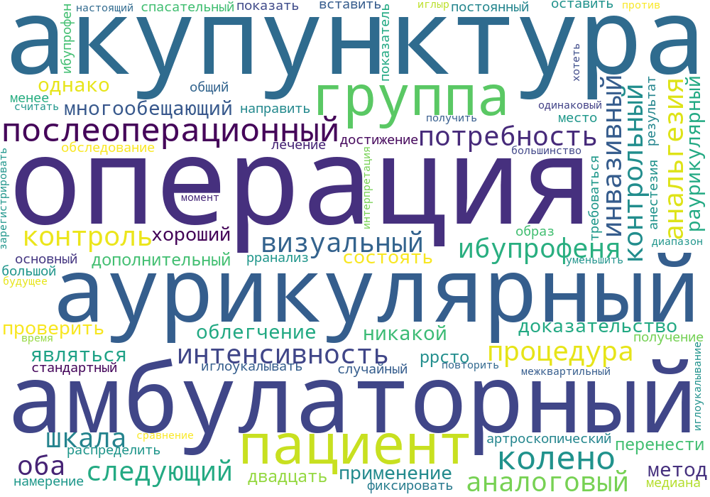 Сто двадцать пациентов, перенесших амбулаторную артроскопическую операцию на колене под стандартной общей анестезией, были случайным образом распределены для получения аурикулярной акупунктуры или контрольной процедуры. Фиксированные постоянные иглоукалывающие иглы были вставлены перед операцией и оставлены на месте до следующего утра. Послеоперационная спасательная анальгезия была направлена на достижение интенсивности боли менее 40 мм по 100-мм визуальной аналоговой шкале. Основным показателем результата была послеоперационная потребность в ибупрофене между операцией и обследованием на следующее утро.