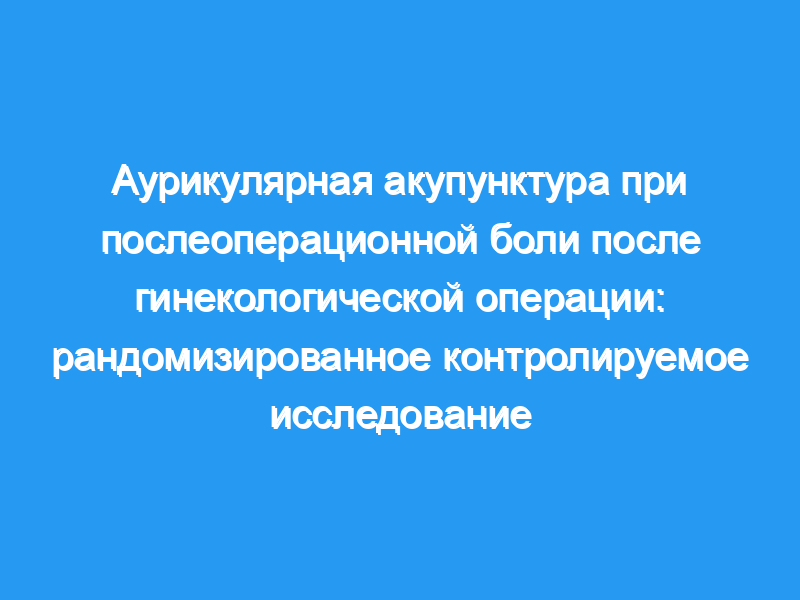 Наше исследование не показало уменьшения послеоперационной боли или опиоидосберегающего эффекта аурикулярной акупунктуры у женщин, перенесших лапароскопические процедуры. Поскольку мы подчеркивали ослепление пациентов и исключение взаимодействия терапевта и пациента, наше исследование предполагает, что электрическая аурикулярная акупунктура не влияет на послеоперационную боль.