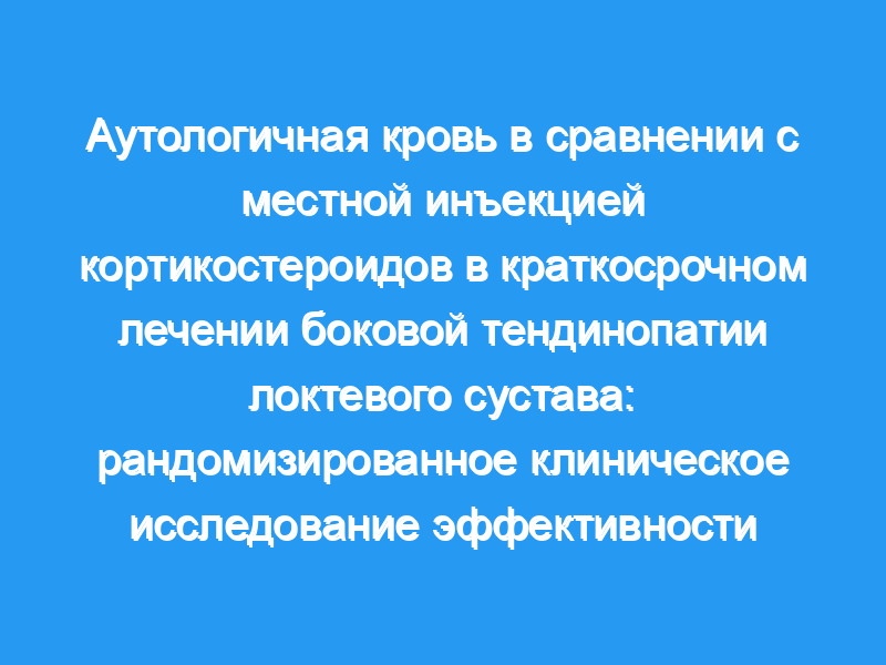 Сравнить местные кортикостероиды с инъекциями аутологичной крови для краткосрочного лечения боковой тендинопатии локтевого сустава. Дизайн: Одно слепое рандомизированное клиническое исследование было проведено в амбулаторной клинике университетской больницы. Было набрано шестьдесят пациентов в возрасте 27-64 лет с новым эпизодом теннисного локтя. Тридцать пациентов были рандомизированы на метилпреднизолон и 30 — на аутологичную группу крови в течение 1 года. Оценивались тяжесть боли в течение последних 24 часов, функция конечностей, боль и сила при максимальном захвате, инвалидность руки, плеча и кисти по быстрому опроснику (Quick DASH), модифицированные баллы Nirschl и порог боли при надавливании. оценивали перед инъекцией и через 4 и 8 недель после инъекции. Мы проанализировали наши данные с помощью теста chi и t.