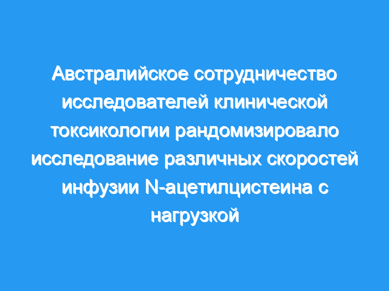 Это было многоцентровое рандомизированное проспективное исследование пациентов с отравлением ацетаминофеном, которые получали N-ацетилцистеин и не имели в анамнезе гиперчувствительности к N-ацетилцистеину. Пациенты были рандомизированы для получения начальной дозы N-ацетилцистеина в течение 15-минутного или 60-минутного периода. Исходные признаки и симптомы, а также побочные эффекты последовательно оценивались до и во время приема N-ацетилцистеина. Тесты на повреждение печени и коагуляцию собирали в начале исследования, а затем с интервалом в 12 часов.