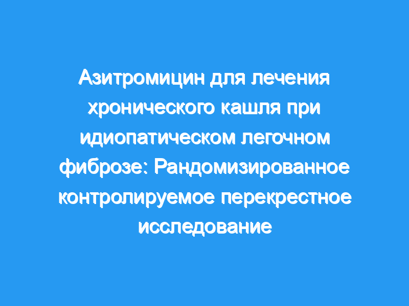 Обоснование: Пациенты с идиопатическим легочным фиброзом (ИПФ) часто страдают от хронического кашля, который трудно поддается лечению, что существенно влияет на качество их жизни. Было продемонстрировано, что азитромицин облегчает хронический кашель в некоторых популяциях, однако это не было исследовано у пациентов с ИПФ.