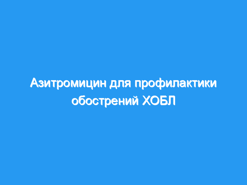 Среди отобранных пациентов с ХОБЛ азитромицин, принимаемый ежедневно в течение 1 года в дополнение к обычному лечению, уменьшал частоту обострений и улучшал качество жизни. жизни, но вызвал ухудшение слуха у небольшого процента испытуемых. Хотя это вмешательство может изменить структуру микробной резистентности, эффект этого изменения неизвестен. (Финансируется Национальными институтами здравоохранения, ClinicalTrials.gov номер, NCT00325897.).