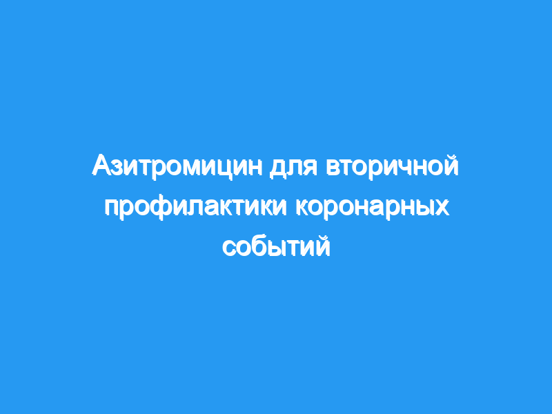 Первичная конечная точка, состоящая из смерти от ишемической болезни сердца, нефатального инфаркта миокарда, коронарной реваскуляризации или госпитализации по поводу нестабильной стенокардии, наступила у 446 участников, которым случайным образом назначили азитромицин, и у 449 участников, которым случайным образом назначили азитромицин. плацебо. В группе азитромицина не было значительного снижения риска по сравнению с группой плацебо в отношении первичной конечной точки (снижение риска на 1 процент [95-процентный доверительный интервал, от -13 до 13 процентов]). Также не было отмечено значительного снижения риска в отношении любого из компонентов первичной конечной точки, смерти от любой причины или инсульта. Результаты не отличались, когда участники были стратифицированы по полу, возрасту, статусу курения, наличию или отсутствию сахарного диабета или серологическому статусу C. pneumoniae на исходном уровне.