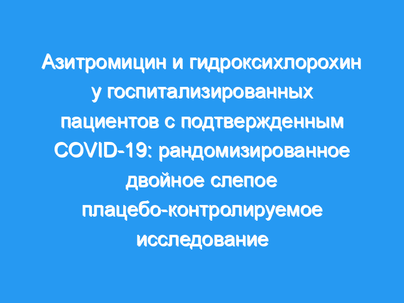Плацебо-контролируемое двойное слепое рандомизированное многоцентровое исследование. Были набраны пациенты в возрасте ≥18 лет, госпитализированные на срок ≤48 ч (без интенсивной терапии) с положительным результатом ПЦР-теста с обратной транскрипцией на коронавирус 2 с тяжелым острым респираторным синдромом (SARS-CoV-2). Лечение включало 500 мг азитромицина в день в течение 3 дней, затем 250 мг азитромицина в день в течение 12 дней в сочетании с 200 мг гидроксихлорохина два раза в день в течение всех 15 дней. Контрольная группа получала плацебо/плацебо. Первичным результатом были дни жизни и выписка из больницы в течение 14 дней (DAOH14).