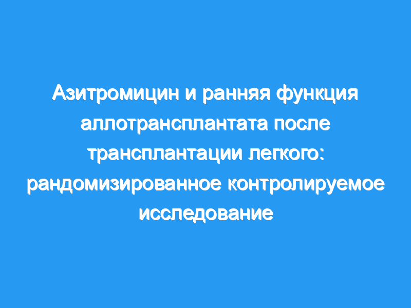 Хроническая дисфункция аллотрансплантата легкого (CLAD) является единственным наиболее важным фактором, ограничивающим долгосрочную выживаемость после трансплантации легкого (LTx). Было показано, что азитромицин улучшает безоперационную и долгосрочную выживаемость, однако возможное влияние на раннюю функцию аллотрансплантата легкого неясно.