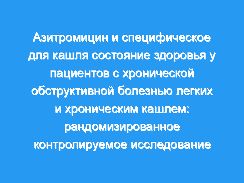 Макролиды уменьшают обострения у пациентов с ХОБЛ. Их влияние на состояние здоровья не оценивалось как первичный результат и является менее четким. В этом исследовании оценивалось влияние профилактического азитромицина на специфическое для кашля состояние здоровья у пациентов с ХОБЛ с хроническим продуктивным кашлем.