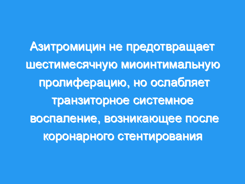 Азитромицин не улучшает результаты поздней ангиографии, но уменьшает повышение уровня С-реактивного белка после стентирования, что указывает на противовоспалительный эффект.