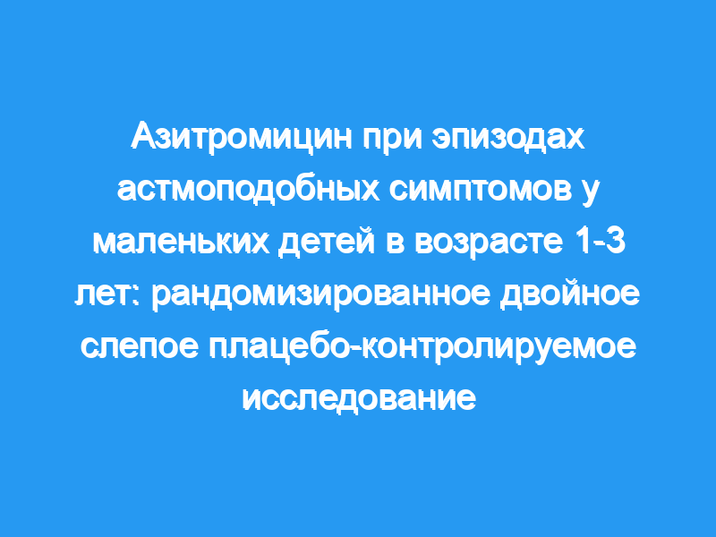 Бактерии и вирусы в равной степени связаны с риском острых эпизодов астмоподобных симптомов у маленьких детей, что позволяет предположить, что антибиотики являются потенциальным средством лечения таких эпизодов. Мы стремились оценить влияние азитромицина на продолжительность респираторных эпизодов у маленьких детей с рецидивирующими астмоподобными симптомами, предполагая, что он сокращает продолжительность симптоматического периода.