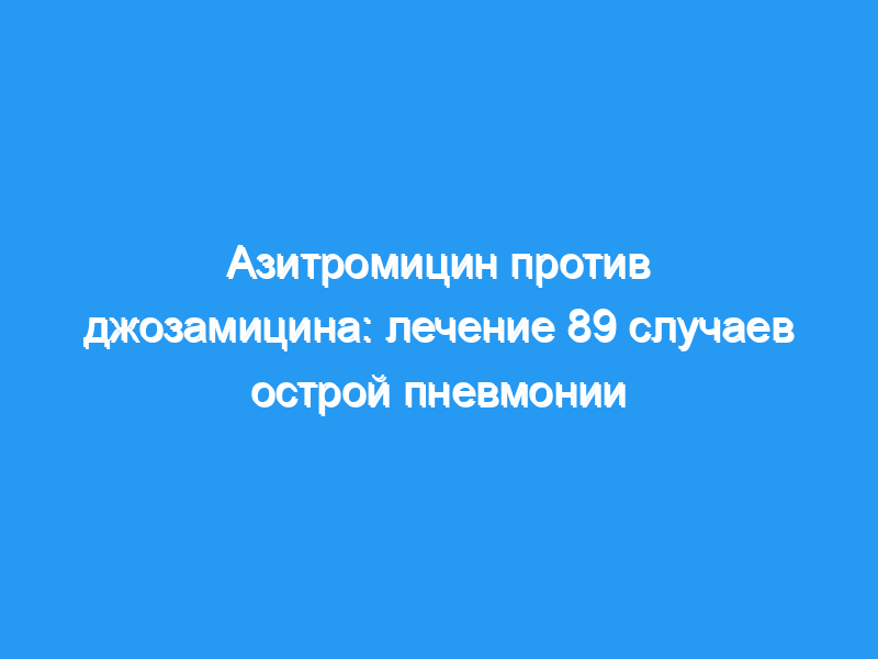 В открытом многоцентровом рандомизированном клиническом исследовании на пациентах с острой пневмонией 5-дневная терапия с использованием нового перорального макролидного антибиотика азитромицина (Az) сравнивалась со стандартной 10-дневной терапией с использованием другого макролида, джозамицина (J). Было пролечено восемьдесят девять пациентов (46 Az, 43 J), обе группы были сопоставимы, за исключением соотношения полов.