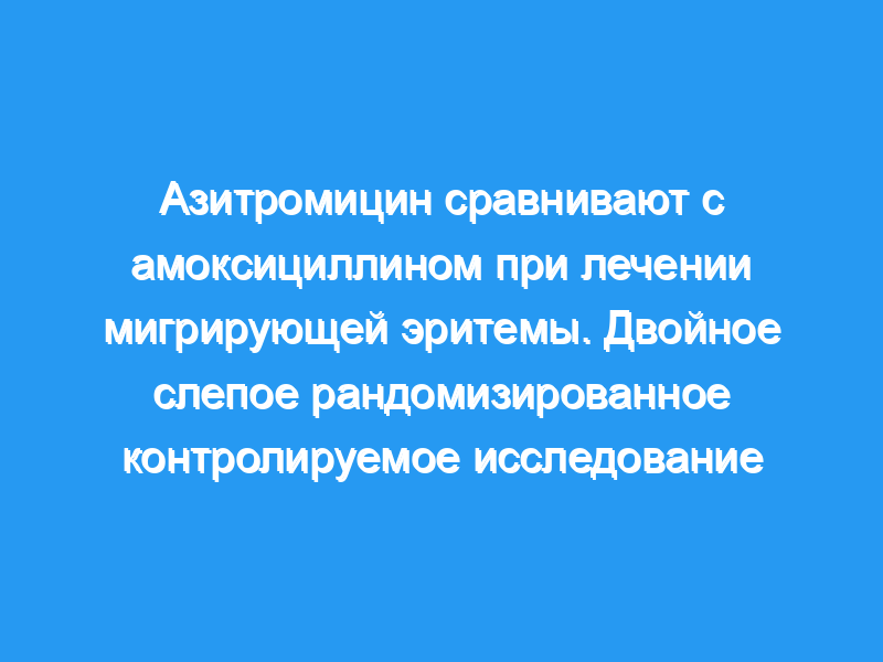 Чтобы определить, является ли азитромицин или амоксициллин более эффективными для лечения мигрирующих поражений кожи, характерных для болезни Лайма. Дизайн: Рандомизированное, двойное слепое, двойное фиктивное, многоцентровое исследование. Острые проявления и последствия оценивались с использованием стандартизированного формата. Исходные клинические характеристики и реакция были коррелированы с серологическими результатами. Наблюдение за пациентами продолжалось 180 дней.