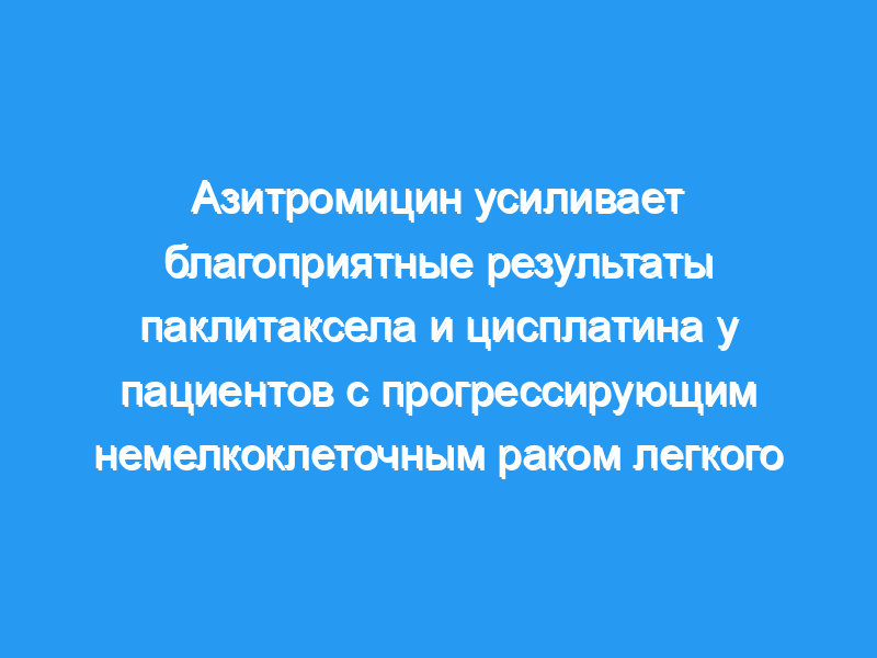 Показатели однолетней выживаемости в группах TP и ATP составили 45,0 и 75,0% соответственно, что достоверно отличалось (P <, 0,05). Наше исследование азитромицина+паклитаксела l+цисплатина у пациентов с НМРЛ III-IV стадии показало благоприятные результаты с точки зрения побочных эффектов и общей выживаемости.