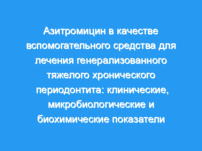 На основании настоящих результатов можно сделать вывод, что дополнительный азитромицин не дает дополнительного преимущества по сравнению с не—хирургическое лечение пародонта по параметрам, исследованным у пациентов с тяжелым генерализованным ХП.