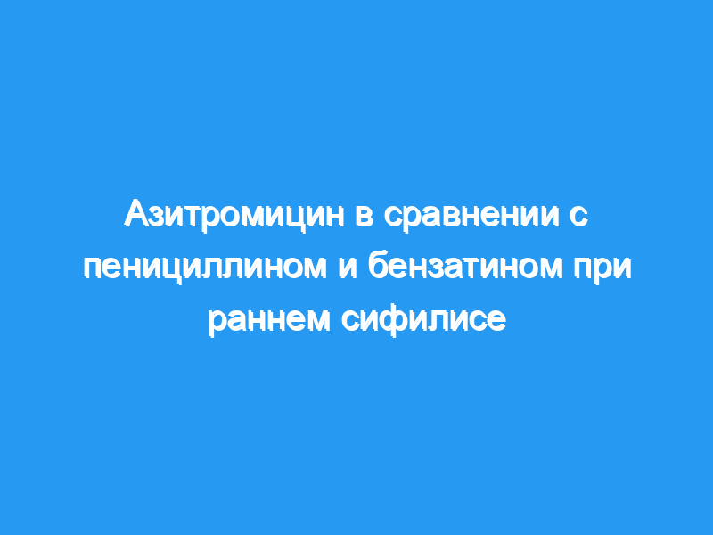 Сифилис — это сложное системное заболевание, вызываемое спирохетой бледной трепонемой. По оценкам Всемирной организации здравоохранения, по меньшей мере 12 миллионов человек во всем мире в настоящее время инфицированы сифилисом. В этом обзоре мы сравнили два современных стандарта лечения раннего сифилиса: бензатин бензилпенициллин (пенициллин G) и азитромицин.