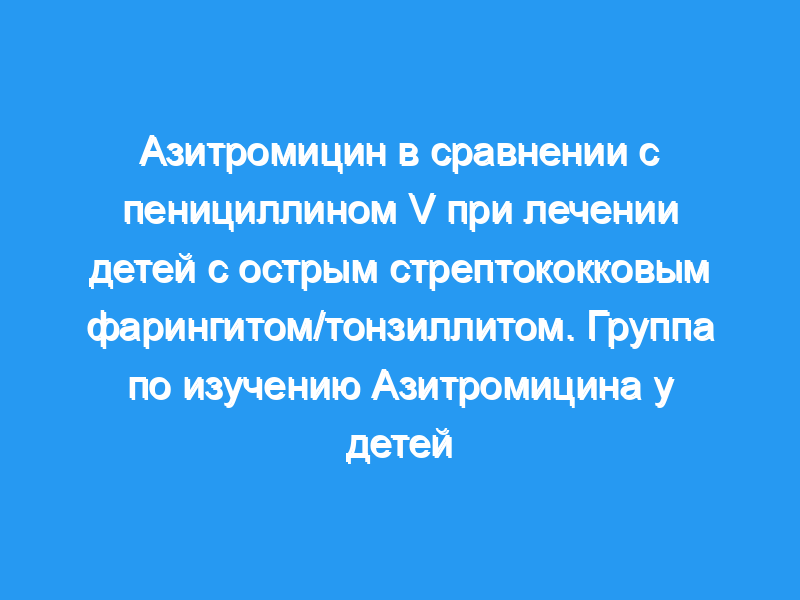 Азитромицин в дозе 10 или 20 мг/кг/сут один раз в день в течение трех дней был таким же безопасным и эффективным, как пенициллин V, вводимый четыре раза в день при лечении детей с острым фарингитом/тонзиллитом.