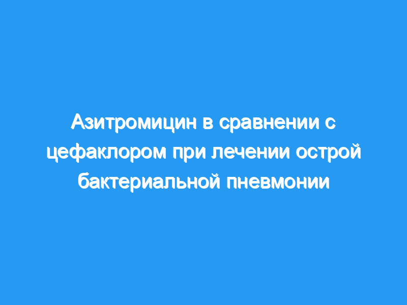 В этом рандомизированном двойном слепом исследовании, проведенном в 28 центрах, азитромицин (разовая доза 500 мг в 1-й день, затем 250 мг один раз в день в течение 2-5 дней) сравнивали с цефаклором (500 мг внутривенно в течение 10 дней). при лечении острой бактериальной пневмонии.