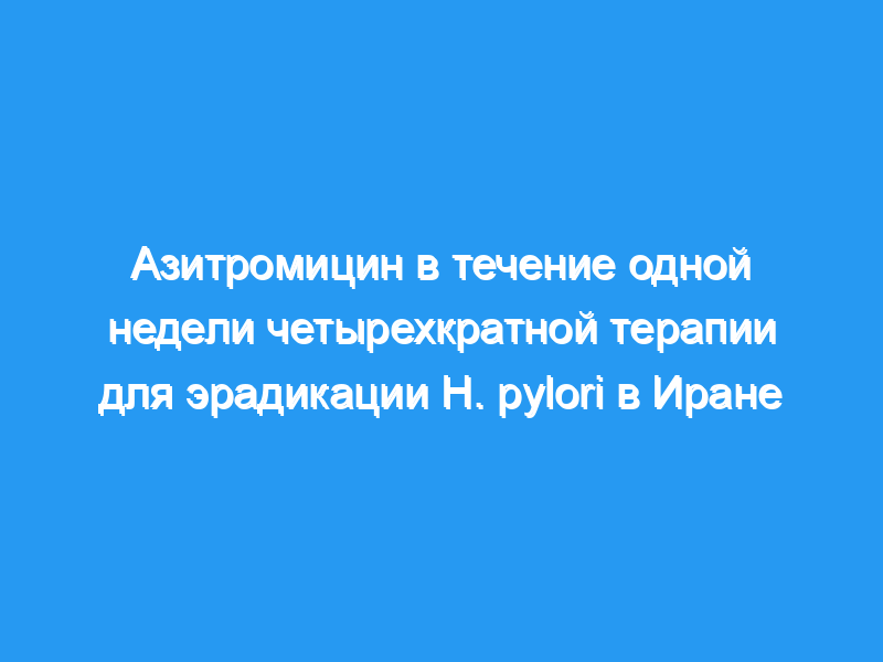 1-недельный азитромицин на основе четырехкратный режим позволяет достичь скорости эрадикации H. pylori, сравнимой со стандартной двухнедельной четырехкратной терапией, и связан с сопоставимой комплаентностью пациентов и осложнениями.< / p>