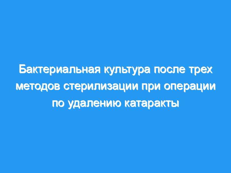 Сравнить бактериальные культуры из трех методов стерилизации непосредственно до и после операции по удалению катаракты. Дизайн: Проспективное рандомизированное открытое групповое сравнительное исследование.
