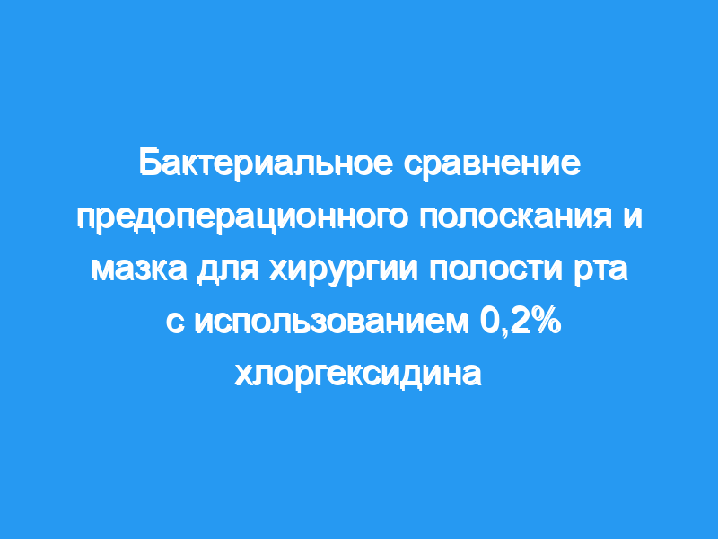 Целью настоящего исследования было сравнить бактериальную нагрузку при использовании методов предоперационного полоскания и тампонирования полости рта 0,2% хлоргексидином (CHX).