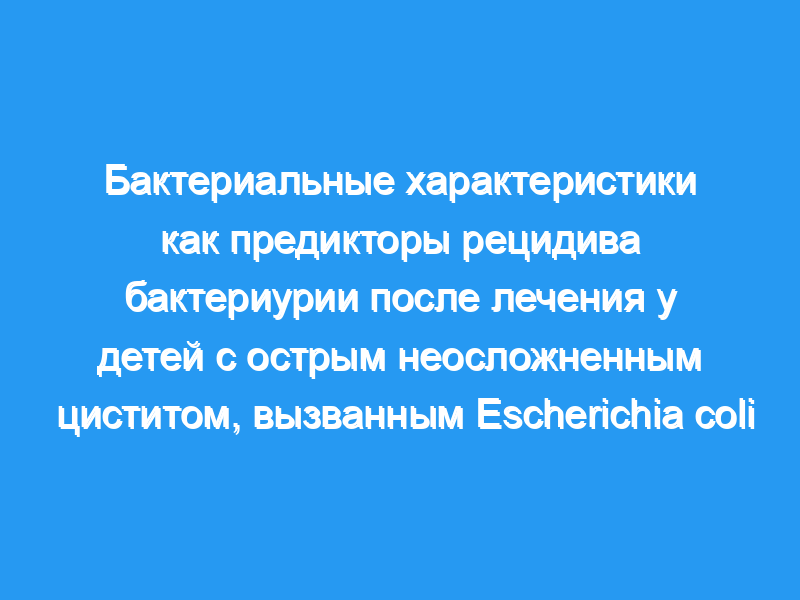 Многочисленные характеристики изолятов мочи Escherichia coli, полученных до лечения у 39 детей с острым неосложненным циститом (включая специфические гены вирулентности и филогенетические группы), выявили повышенный риск рецидива бактериурии после 3-дневной (но не 10-дневной) терапии амоксициллином-клавуланатом.