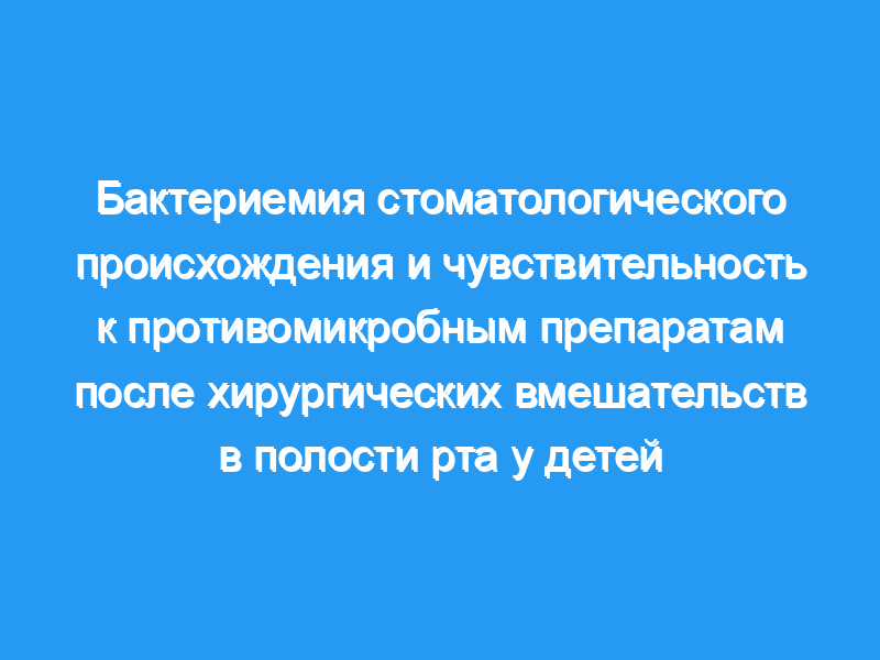 Распространенность и интенсивность бактериемии стоматологического происхождения были изучены у 207 детей, разделенных на четыре группы: исходная без хирургического вмешательства (группа I), после удаления одного зуба (группа II), многократного удаления зуба (группа III) и подъема слизисто-надкостничного лоскута (группа IV). Бактериальные изоляты выращивали с использованием бульонной культуры (Bactec) и центрифугирования лизиса (Детский изолятор). Были зарегистрированы отложения зубного налета, гингивит, спонтанное кровотечение из десен и наличие/отсутствие зубного абсцесса и оценена их связь с бактериемией.