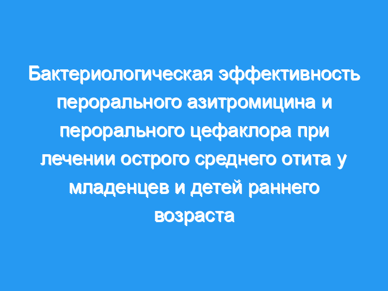 Бактериологическая недостаточность после 3-4 дней лечения обоими препаратами наблюдалась у высокой доли пациентов с положительной культурой, особенно у тех, у кого АОМ была вызвана Haemophilus influenzae (16 из 33 [53%] пациентов, получавших азитромицин, и 13 из 34 [52%] пациентов, получавших цефаклор). Хотя для Streptococcus pneumoniae можно было продемонстрировать четкую корреляцию персистенции патогена с повышенными МИК соответствующих препаратов, для H. influenzae такой корреляции обнаружено не было.