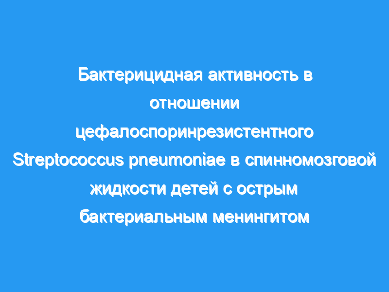 На основании экспериментальных исследований in vitro и на животных для эмпирического лечения этих пациентов было рекомендовано добавление ванкомицина или рифампицина к цефалоспоринам расширенного спектра действия.Спинномозговая жидкость (ликвор) была взята у 31 ребенка с бактериальным менингитом, рандомизированного для получения только цефтриаксона (n = 11), цефтриаксона плюс рифампицин (n = 10) или цефтриаксона плюс ванкомицин (n = 10). Ликвор детей, получавших только цефтриаксон, был неспособен убивать промежуточно устойчивые к цефтриаксону или полностью устойчивые штаммы, когда концентрация цефтриаксона в ликворе составляла менее 5 мкг/м.