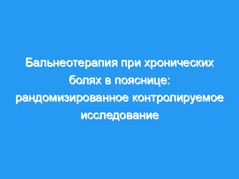 Мы стремились определить эффективность бальнеотерапии по сравнению с физиотерапией у пациентов с хронической болью в пояснице.