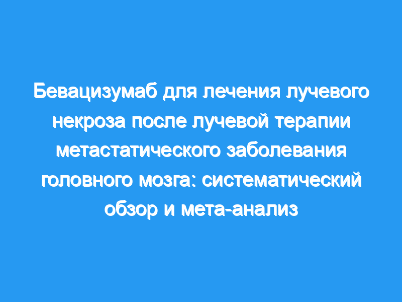 Лучевая терапия является основой лечения метастазов в мозг (БМ). Лучевой некроз (РН) является серьезным осложнением лучевой терапии. Бевацизумаб (БВ), моноклональное антитело против фактора роста эндотелия сосудов, все чаще используется для лечения РН. Мы систематически просматривали медицинскую литературу на предмет исследований, сообщающих об эффективности и безопасности бевацизумаба для лечения РН у пациентов с БМ.