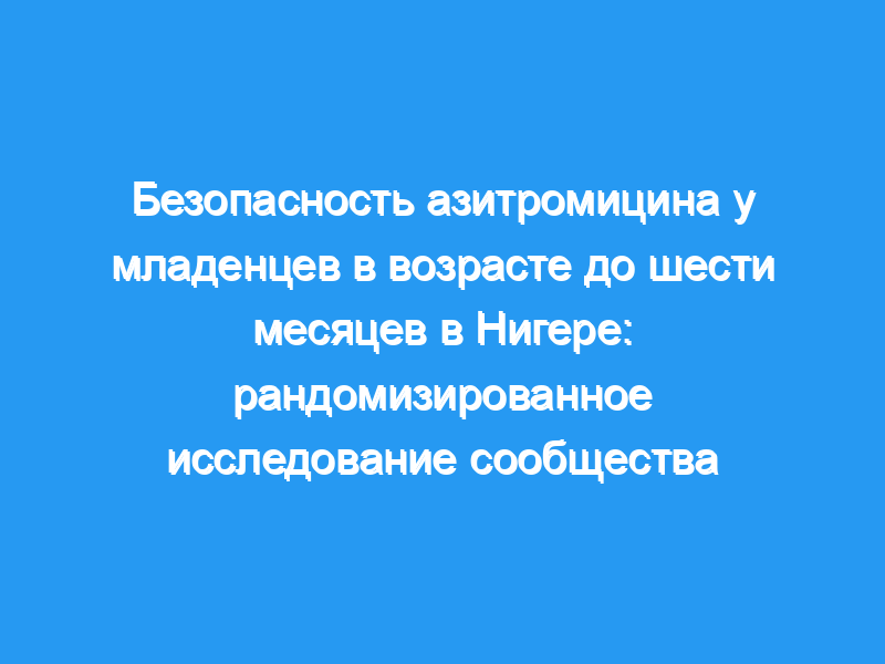 Азитромицин, назначаемый младенцам в возрасте 1-5 месяцев, оказался безопасным. Можно было бы рассмотреть возможность включения детей младшего возраста в более масштабные программы борьбы с детской смертностью или трахомой, основанные на азитромицине, если они будут признаны эффективными. Пробная регистрация: ClinicalTrials.gov NCT02048007.