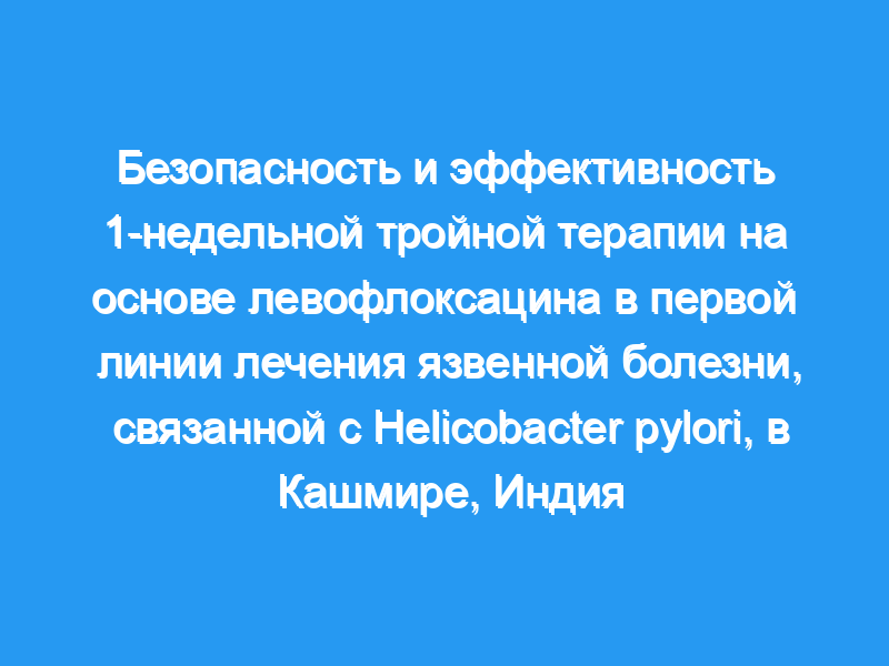 Тройная терапия на основе левофлоксацина и тинидазола была высокоэффективной и безопасной в качестве схемы первой линии у индийских пациентов с язвенной болезнью желудка и двенадцатиперстной кишки. ассоциируется с инфекцией H. pylori. Режим был хорошо переносим.