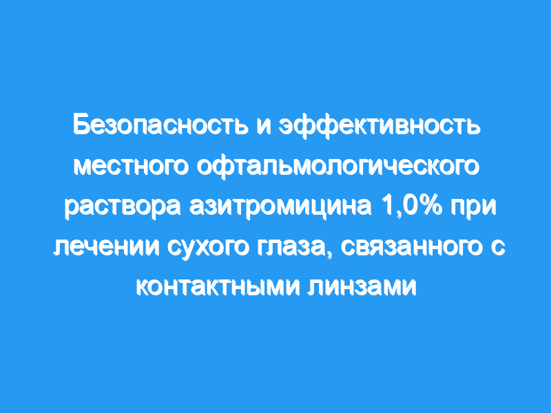 Лечение местным офтальмологическим раствором азитромицина хорошо переносилось и привело к значительному улучшению комфортного контакта. время ношения линз у пациентов с CLDE.