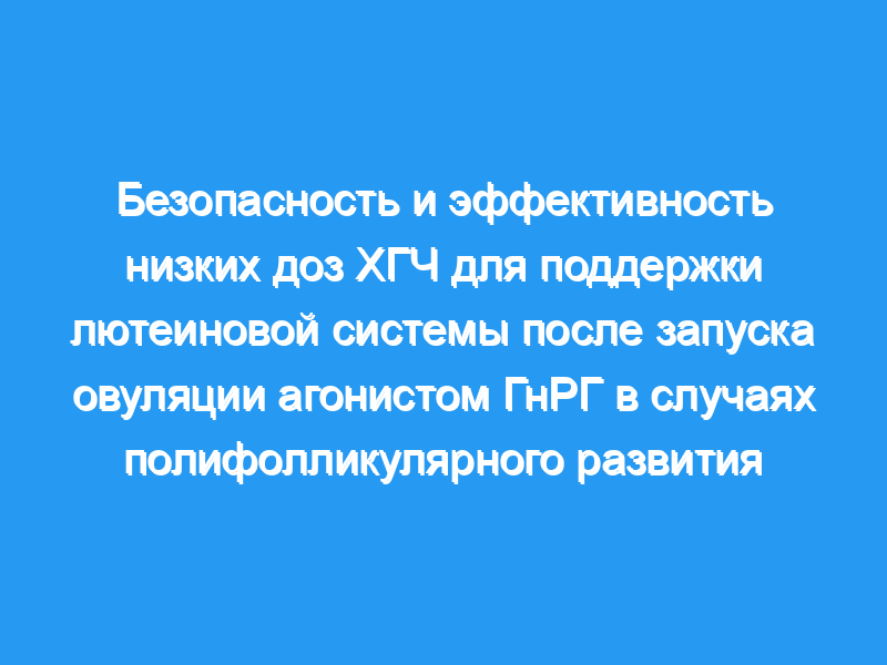 Применение агониста ГнРГ в случаях полифолликулярного развития способно вызвать овуляцию без последующего увеличения яичников и/или каких-либо признаков синдрома гиперстимуляции. Поддержка лютеина низкими дозами ХГЧ не сводит на нет преимущества агонистов ГнРГ в предотвращении синдрома гиперстимуляции яичников, но, по-видимому, устраняет, по крайней мере частично, возможные вредные эффекты агонистов ГнРГ на функциональность лютеина.