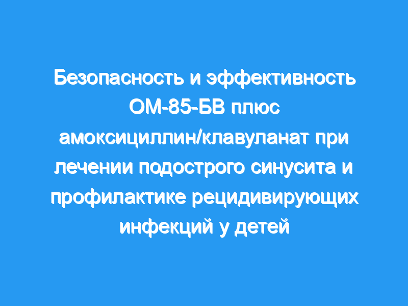 Мы пришли к выводу, что ОМ-85-БВ безопасен в педиатрическом возрасте, а также ускоряет излечение и улучшение состояния при подостром синусите, одновременно снижая частоту респираторные инфекции.< / p>