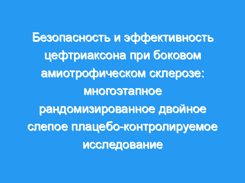 Эксайтотоксичность глутамата может способствовать патофизиологии бокового амиотрофического склероза. На животных моделях сниженная избыточная экспрессия переносчика возбуждающих аминокислот 2 (EAAT2) задерживает начало заболевания и продлевает выживаемость, а цефтриаксон повышает активность EAAT2. Мы стремились оценить безопасность и эффективность цефтриаксона при боковом амиотрофическом склерозе в комбинированном клиническом исследовании 1, 2 и 3 фазы.