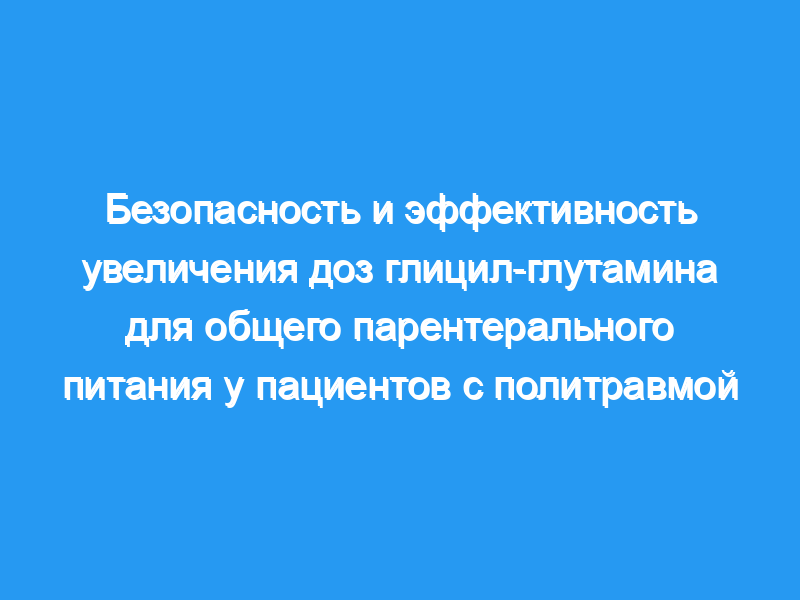 Мы пришли к выводу из этого первого доступного исследования определения дозы глютаминсодержащих дипептидов, что у политравматизированных пациентов инфузия GLY-GLN в дозе 570 мг/кг/день (что соответствует 28 г глютамина или 40 г дипептида/70 кг соответственно) необходима для получения устойчивого эффекта. на концентрацию глютамина в плазме крови.