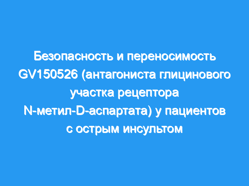 Предпосылки и назначение: GV150526 является новым антагонистом глицинового сайта в комплексе рецепторов N-метил-D-аспартата. Это мощное нейропротекторное средство на животных моделях инсульта, включая постоянную окклюзию средней мозговой артерии у крыс. В отличие от антагонистов в месте связывания глутаматного лиганда, GV150526, по-видимому, не оказывает неблагоприятного воздействия на гемодинамику и центральную нервную систему. Целью данного исследования была оценка безопасности, переносимости и фармакокинетики нагрузочных и поддерживающих инфузий GV150526 у пациентов с острым инсультом.