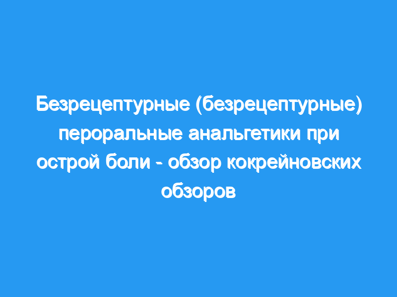 Часто используются безрецептурные (безрецептурные или безрецептурные) анальгетики (обезболивающие). Они доступны в различных марках, размерах упаковки, рецептурах и дозах. Они могут использоваться при различных типах боли, но в этом обзоре сообщается о том, насколько хорошо они работают при острой боли (боли кратковременной продолжительности, обычно с быстрым началом). Тридцать девять кокрейновских обзоров рандомизированных исследований изучали обезболивающую эффективность отдельных медикаментозных вмешательств при острой послеоперационной боли.