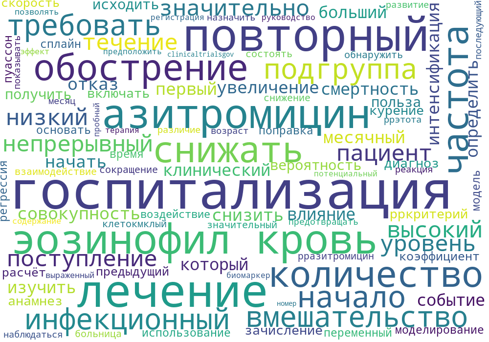 Азитромицин значительно снижал TF на 24% в течение 3 м (ОР = 0,76, 95% ДИ:0,59,0,97, р = 0,031) за счет снижения SH на 50% (ОР = 0,50, 95% ДИ:0,30,0,81, р = 0,006), что состоит из 53%-ного сокращения повторных госпитализаций (ОР = 0,47, 95%ДИ:0,27,0,80, р = 0,007). Было обнаружено значительное взаимодействие между вмешательством, СРБ и количеством эозинофилов в крови при поступлении в больницу, при этом азитромицин значительно снижал повторные госпитализации у пациентов с высоким уровнем СРБ (> 50 мг/л, ОР = 0,18, 95%ДИ: 0,05,0,60, р = 0,005) или низким количеством эозинофилов в крови. (<,300 клеток/мкл, ОР = 0,33, 95%ДИ:0,17,0,64, р = 0,001). В непрерывных анализах не наблюдалось различий в реакции на лечение по возрасту, ОФВ1, СРБ или количеству эозинофилов в крови.