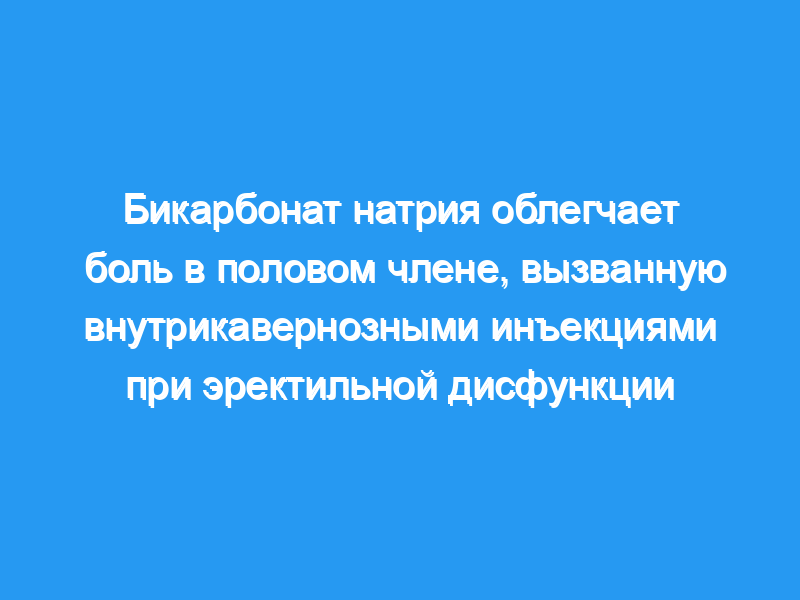 В попытке определить, может ли боль в половом члене, связанная с внутрикорпоральными инъекциями, быть вызвана кислотностью лекарства, мы провели рандомизированное исследование, сравнивающее частоту возникновения боли в половом члене после внутрикорпоральных инъекций с добавлением или без добавления бикарбоната натрия к внутрикорпоральному лекарству.