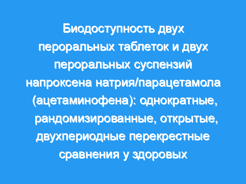 Всего 26 испытуемых (15 мужчин, 11 женщин, средний возраст 29 [8] лет [диапазон 20-50 лет], вес 63,1 [9] кг [диапазон 51,4-84,4 кг], рост 164 [9] см [диапазон, 149-179 см] и индекс массы тела [ИМТ], 23,53 [2,18] кг/м(2) [диапазон, 18,54-26,82 кг/м(2)]) были зачислены для получения суспензионно-дозированной композиции, 13 испытуемых сначала получили суспензионно-тестируемую композицию. Всего 26 испытуемых (13 мужчин, 13 женщин, средний [SD] возраст 29 [8] лет [диапазон 18-43 лет], вес 64,3 [7,7] кг [диапазон 50,6-80,7 кг], рост 165 [9] см [диапазон 151-181 см], и ИМТ, 23,64 [2,43] кг/м(2) [диапазон, 18,02-26,42 кг/м(2)]) были зачислены для получения таблетированной лекарственной формы, 13 испытуемых сначала получили тестируемую таблетированную форму. На основе дисперсионного анализа не было обнаружено никаких существенных эффектов периода или последовательности. Для суспензионно-дозированной композиции 90% CIs для напроксена C (max), AUC (0-48) и AUC (0-бесконечность) составляли от 93,06% до 104,00%, от 93,50% до 98,44% и от 92,14% до 98,99% соответственно и составляли от 90,09% до 105,90%, 88,58% до 99,34% и 91,43% до 101,55%, соответственно, для парацетамола. Для таблетированной лекарственной формы 90% CIs для напроксена C (max), AUC (0-48) и AUC (0-бесконечность) составляли от 102,83% до 117,15%, от 96,59% до 104,26% и от 96,01% до 102,90% соответственно и составляли от 94,04% до 121,09%, 95,48% до 105,64% и 96,64% до 105,42%, соответственно, для парацетамола.