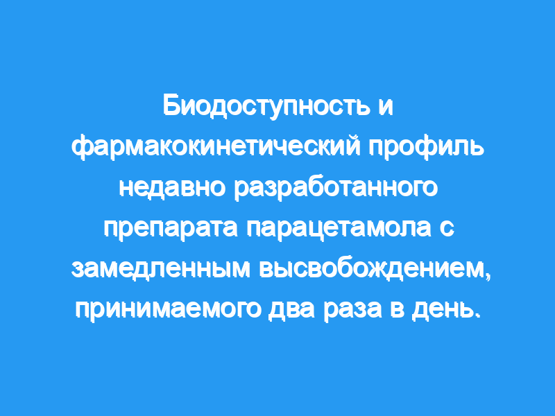 Новый препарат парацетамола с замедленным высвобождением (SR), принимаемый дважды в день, был разработан для улучшения удобства и повышения комплаентности пациентов при лечении боли, вызванной хроническими заболеваниями. Это исследование было направлено на оценку биодоступности и сравнение фармакокинетических (PK) свойств новой формы парацетамола SR (2×1 000 мг) с таковыми у парацетамола с немедленным высвобождением (IR) (2×500 мг) и существующего парацетамола с пролонгированным высвобождением (ER) (2×665 мг).