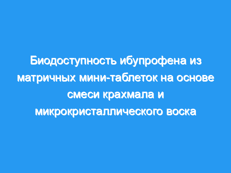 Была протестирована биодоступность ибупрофена из матричных мини-таблеток на основе микрокристаллического воска и производного крахмала.