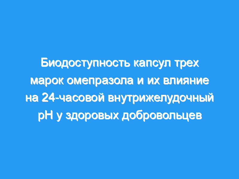 Сравнить биодоступность капсул омепразола трех марок (Losec, Aoke-Changzhou No.4 Pharm, Омепразол-Sanye Pharm) и их влияние на 24-часовой внутрижелудочный рН у здоровых добровольцев.