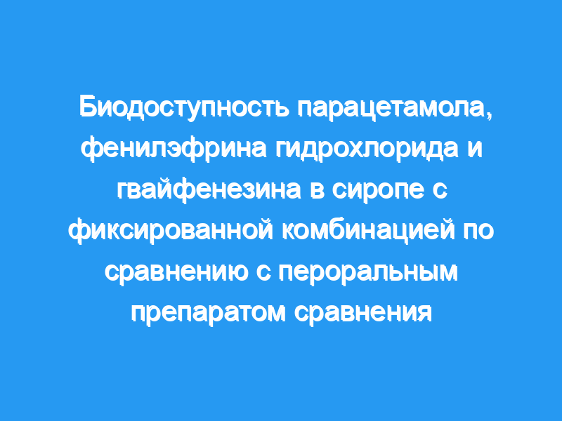 Это было одноцентровое, открытое, рандомизированное, реплицируемое по ссылкам перекрестное исследование. Здоровые взрослые добровольцы получали одну дозу сиропа и две отдельные дозы контрольной пероральной жидкой композиции в рандомизированной последовательности в течение трех периодов исследования с интервалом вымывания ≥ 7 дней между периодами исследования. Образцы крови регулярно отбирались после приема препарата и анализировались на содержание парацетамола, фенилэфрина гидрохлорида и гвайфенезина, регистрировались нежелательные явления.