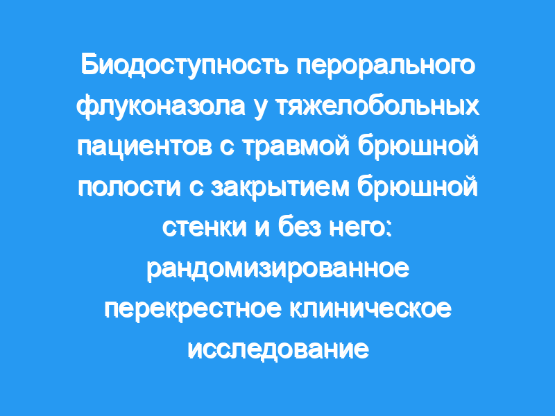 В качестве маркера абсорбции использовали флуконазол, обычно назначаемый противогрибковый препарат с хорошей биодоступностью. Пациенты с послеоперационной травмой брюшной полости были включены в перекрестное исследование «случай-контроль» (лапаростомия в сравнении с закрытой брюшной полостью) для приема флуконазола перорально или парентерально (нагрузочная доза 400 мг, затем 200 мг QD) в течение одной недели. После периода вымывания в течение второй недели использовали альтернативный способ введения. Уровни в крови собирали в конце каждой недели терапии. Образцы кала из ректального мазка культивировали на наличие грибов на 0, 7 и 15-й дни.